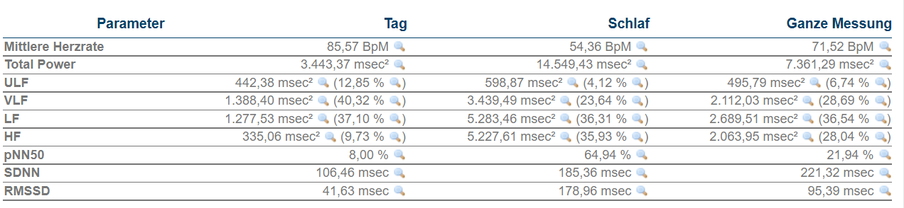 aber keine Richtwerte zu : was sind hohe und was sind niedrige werte bei der RMSSD in msec angebeben ?????