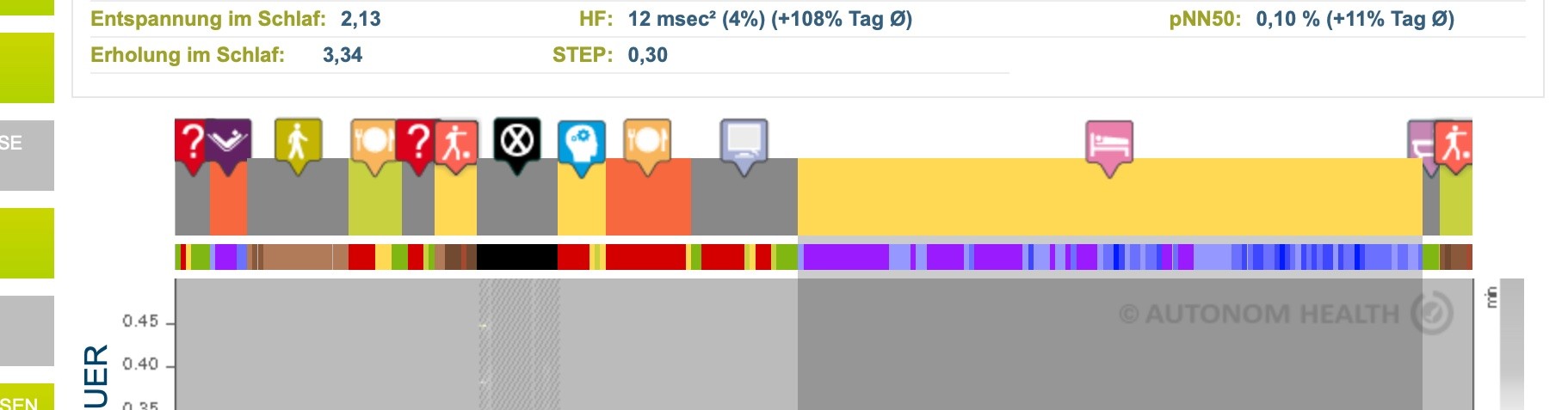 Hintergrund: Kapitel "Fallbeispiele aus der Praxis" im HRV-Buch, Abschnitt 6: Frau im Burnout. Im Buch wird ausgeführt, dass der Schlaf dieser Frau aus einer schlechten Phase (Erschöpfungsschlaf) und einer besseren Phase (Erholungsschlaf) besteht. In der Aktivitätenleiste sind diese Bereiche ockerfarben und gelb markiert. Wenn man aber die entsprechende Messung aus den Beispieldaten aufruft, ist der gesamte Schlaf als eine Phase, gelb markiert, dargestellt. Kann das manuell geändert werden?