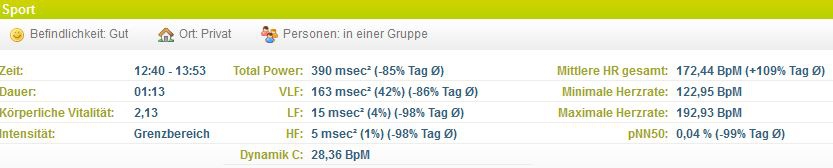 Mir ist der Wert der Neurophysiologische Belastung bei den Sporteinheiten an diesem Tag unklar. Bei Sporteinheit 1 (mittags) - flotte Skitour - ist der Wert bei 41,22 - was lt. Beschreibung ein trainingswirksamer Reiz war. Gefühlt war ich dabei an meiner Grenze, musste zwischendurch stehenbleiben und pausieren - Puls die meiste Zeit bei durchschnittlich 175 (zwischen 12:40-13:50 Uhr). Wie kann das sein, dass die Neurophysiologische Belastung mit 41,22 eher an der Untergrenze angegeben wird?